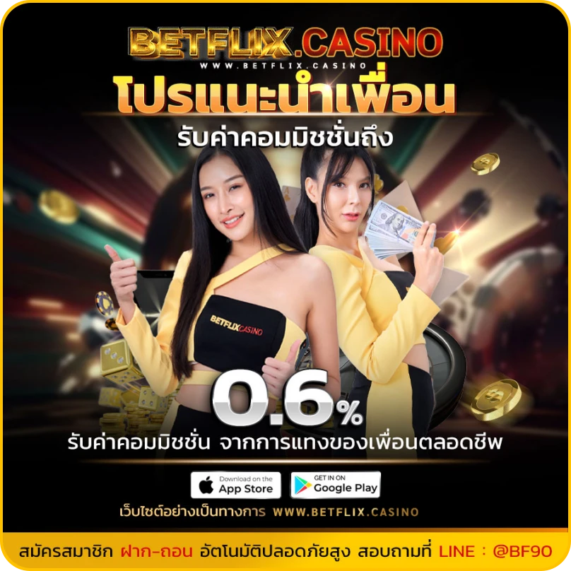 BETFLIX CASINO ผู้ให้บริการ คาสิโนออนไลน์ ครบวงจร ที่เปิดให้เดิมพันได้มากกว่า 50 แบรนด์ดังยอดฮิต เพียงยูสเซอร์เดียวก็สามารถเข้าเล่นได้ทุกค่ายไม่ต้องโยกเงิน ให้เสียเวลา ด้วยเหตุนี้จึงทำให้เราเป็นเบอร์หนึ่งในตอนนี้ และได้รับการแต่งตั้งจาก BETFLIX โดยตรง ให้เป็นผู้ให้บริการในประเทศไทย (ตั้งแต่ 2018) อย่างเป็นทางการ